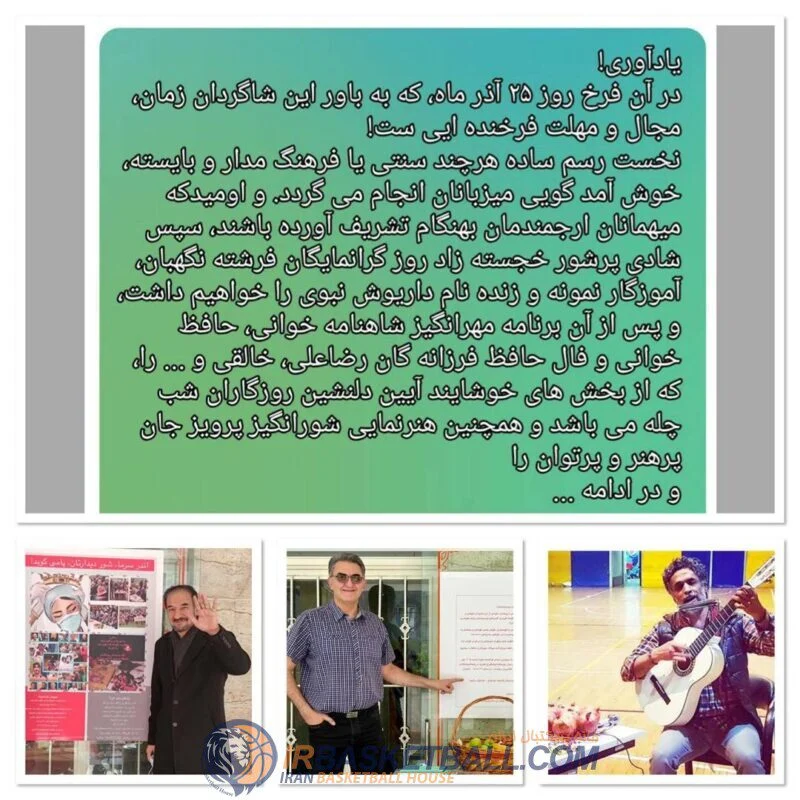 بخشی از توضیحات در برنامه و در گفتاری چند از آقای ناصر سلیمی پیشکسوت بسکتبال آمده است.
